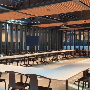 Un lieu fonctionnel aux espaces variés : salles de réunion et espaces modulables, permettant d’alterner efficacement temps de travail et moments de pause. Idéal pour organiser une journée d’étude structurée, confortable et propice au travail collectif.